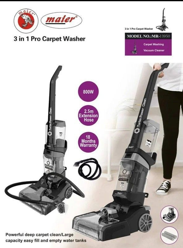 فرش و مبل شوی مایر مدل MR-13950، تجربهای نوین در نظافت فرشو مبل این دستگاه با توان 800 وات و برس لرزشی با موهای سخت برای تمیز کردن عمقی فرش و موکت ، مبل و ملزومات داخلی ماشین بسیار مناسب است . برس با عرض 24 سانتیمتر این اماکن رو ب ما میدهد ک سریعتر و با عبور کمتر از سطح فرش یا مبل ما شسته و آبش گرفته شود . طراحی ارگونومیک و سبک، کاربری آسانی را در اختیار شما قرار میدهد. انتخابی هوشمندانه برای خانهای همیشه تمیز و زیبا