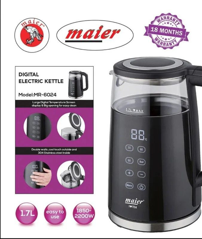 این کتری برقی همچنین دارای 13 سطح تنظیم دما است که امکان انتخاب دما بر اساس نیازهای متفاوت را برای کاربر فراهم میآورد. ظرفیت این کتری 1.7 لیتر است که برای استفادههای روزمره، حجم مناسبی محسوب میشود. توجه به نکات ایمنی نیز در طراحی این دستگاه دیده شده است، بهطوریکه این کتری بدون آب روشن نمیشود. برای جلوگیری از آسیب به سنسور دستگاه، توصیه میشود بلافاصله پس از جوش آمدن و تخلیه آب، از ریختن آب تازه درون آن پرهیز گردد. با در نظر گرفتن تمامی این ویژگیها، کتری برقی مایر مدل 6024 گزینهای مطمئن و کارآمد برای کاربرانی است که به دنبال کیفیت و عملکرد بالا هستند.